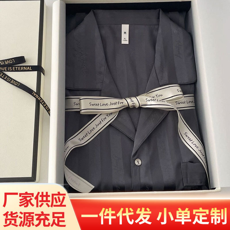 2025新型カップルパジャマファッション薄手春夏男性スーツシルク家庭服女性氷糸メーカー卸売り