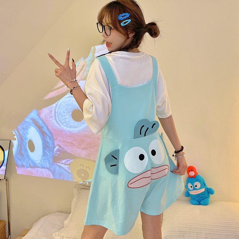 ワンピースパジャマ女性夏の新型半袖純綿ストラップ人魚漢トン醜い魚カップル家庭服男性2点セット