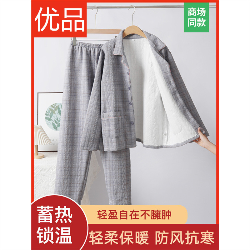 100% 純綿パジャマ男性秋冬タイプ冬冬三層厚手綿入り家庭服男性式保温