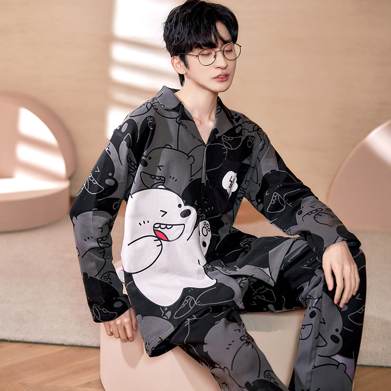 現物発パジャマ男性綿質長袖春秋新作青少年アニメ家庭服セット