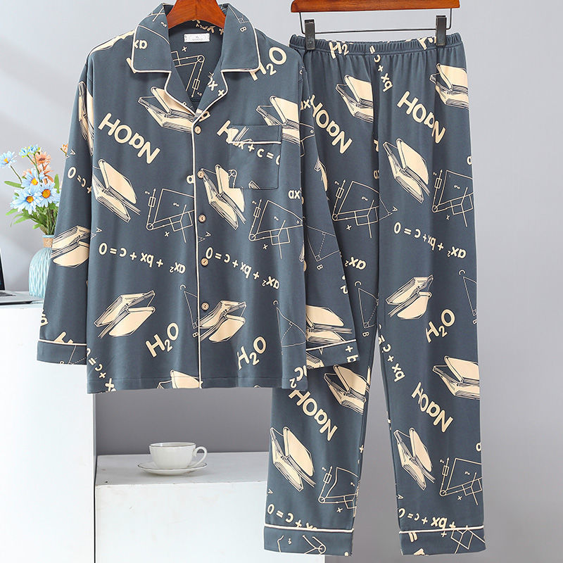 パジャマ男性春秋純綿長袖男性プラスサイズ青年秋冬天家服外着可