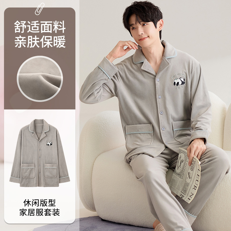 現物発行書類1-65三階綿入りパジャマ男性冬の厚手カーディガン男性コーラルベルベット綿入りホームウェア