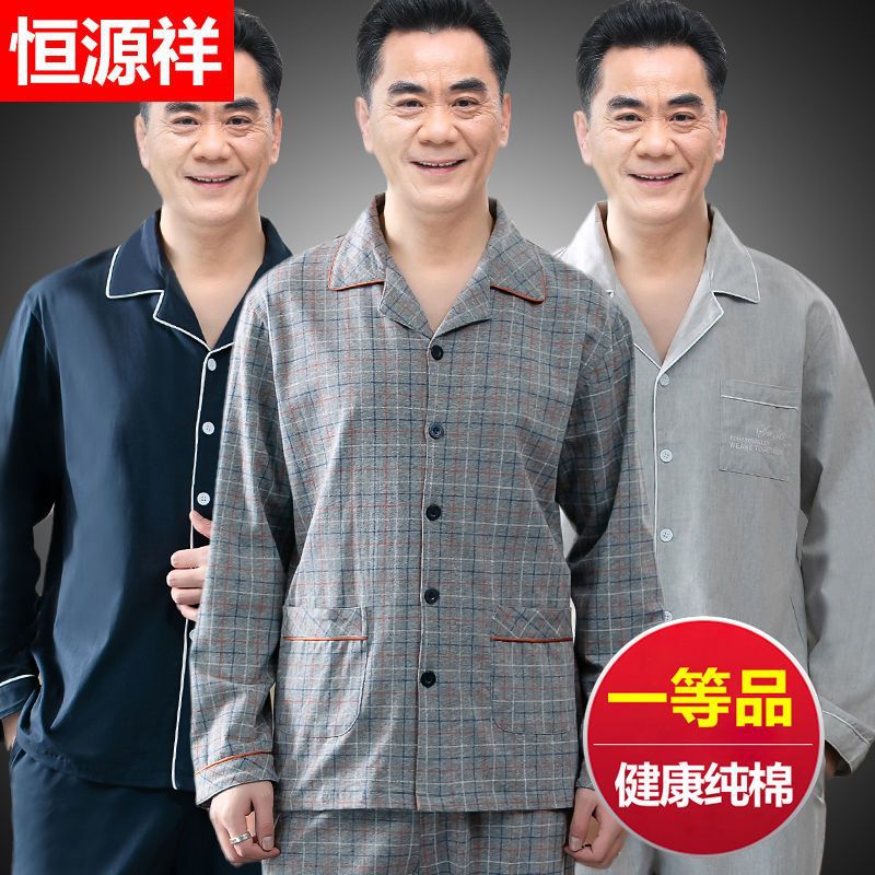 パジャマ男純綿長袖春秋中老父家服240斤プラスサイズセット