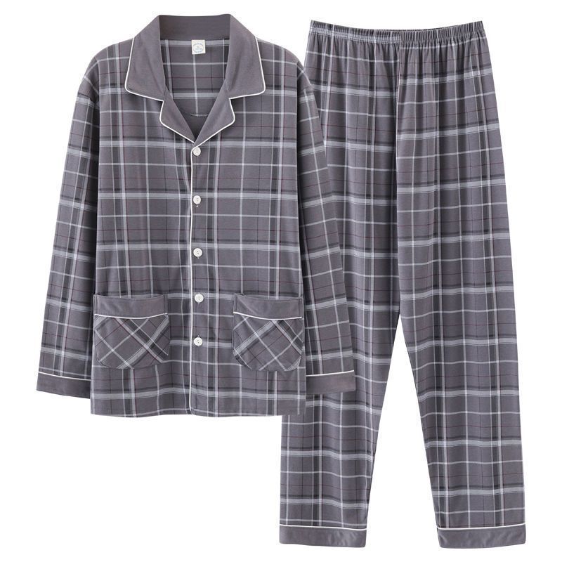 100% 純綿パジャマ男性長袖春秋夏セット中高年男性用ルームウェア