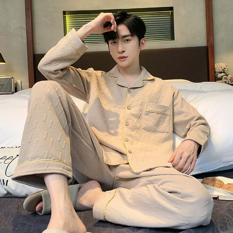 【100% 純綿】パジャマ男性長袖純綿春秋秋冬男性薄い家庭服セット