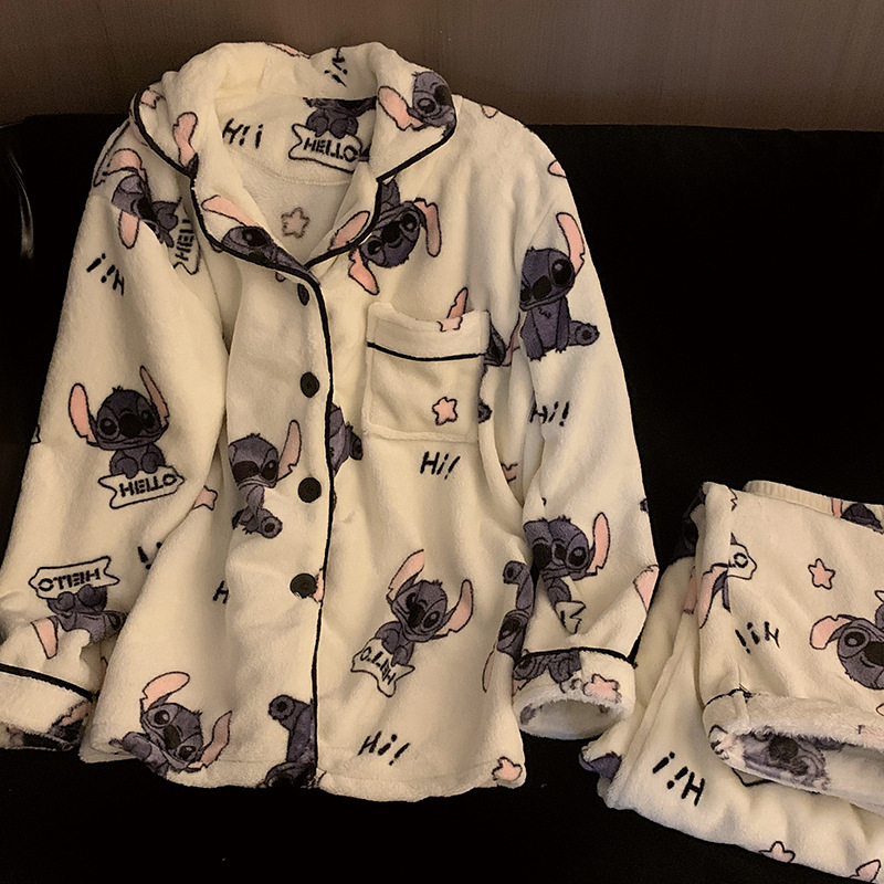 実体店のぬいぐるみパジャマ女性冬の新型男性フランネルは保温カップルの家庭服セットを厚くした