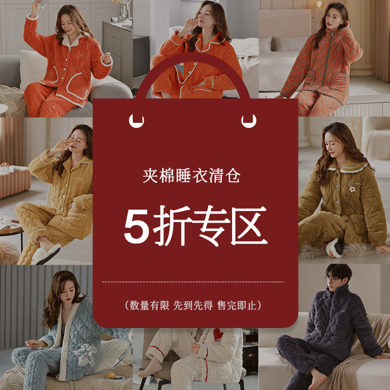 【在庫一掃】サンゴのパジャマ女性秋冬三階に綿入れの上着を挟んで、男性の部屋を厚くして冬の服を着ます。