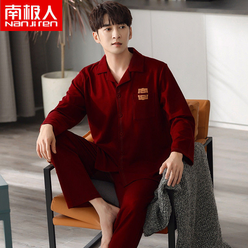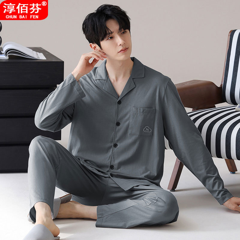 純綿パジャマ男性用春秋カーディガン長袖新作ゆったり版ファッション秋冬モデルホームウェア外着可
