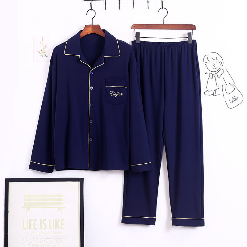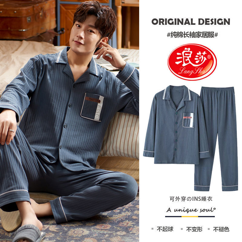 男性パジャマ100% 純綿長袖秋冬モデル純綿男性用大サイズカーディガン春秋ホームウェア