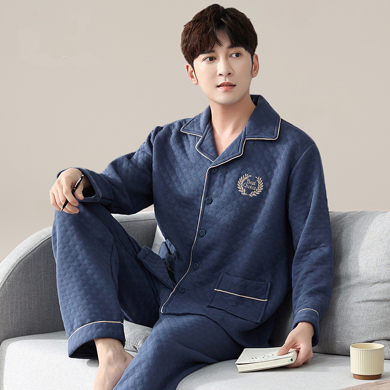 パジャマ男性春秋タイプの厚手純綿長袖2024年新型秋冬タイプ冬綿空気綿サンドイッチ