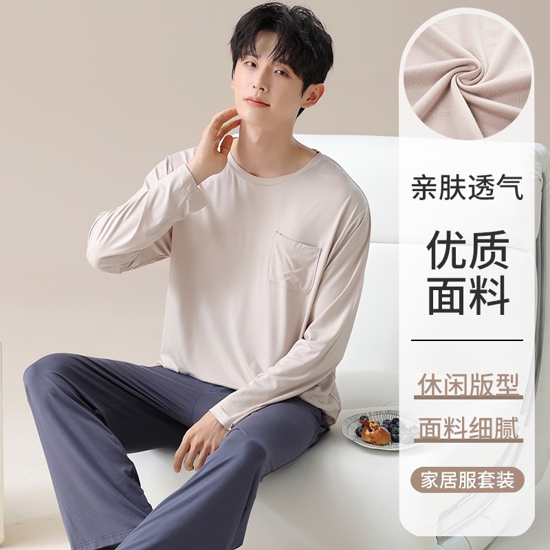 パジャマ男性長袖春秋パジャマ男性家庭服青少年学生薄手秋パジャマ男性家庭服