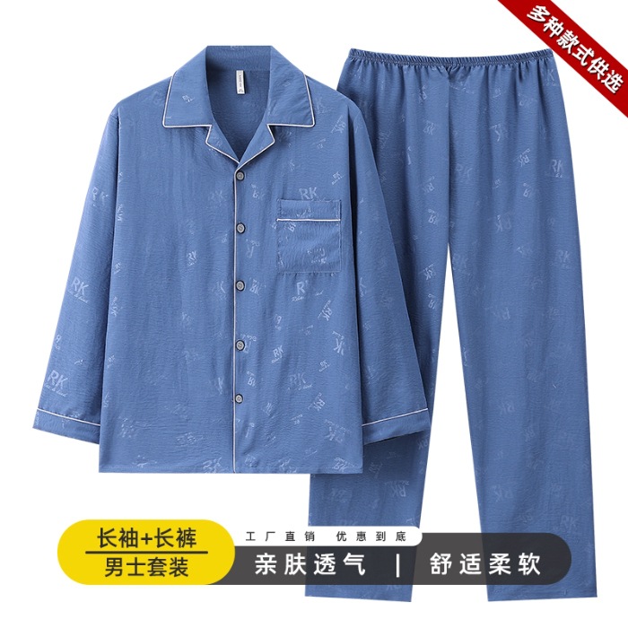 日本の着物春と秋のメンズパジャマ大きいサイズホーム服純綿先染めジャカードガーゼパジャマスウェットスチームスーツ