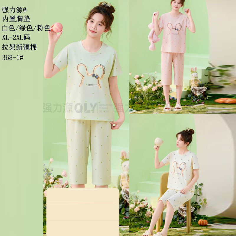 強力源タイトサイラックコットン半袖パンツ25新型ホームウェアセット内蔵胸パッドファッション女性パジャマ