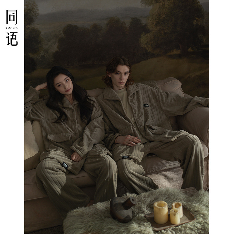 同語24秋冬カップルパジャマ春秋モーデル綿ソフトスーツ男レディース冬新品ホームウェア