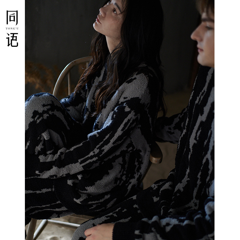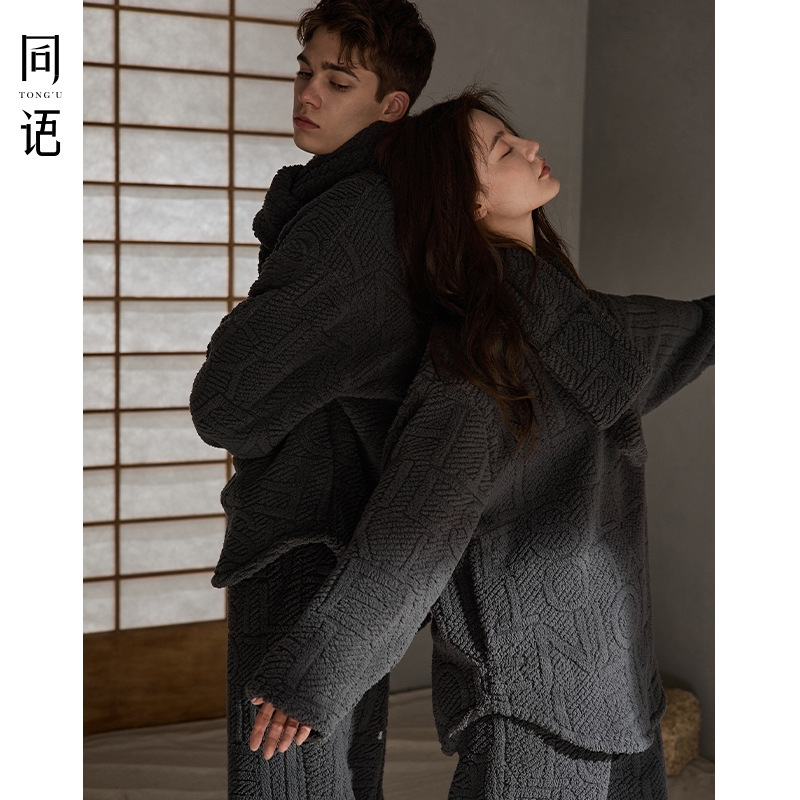 カップルパジャマ女性秋冬海島パイル保温高級感カジュアルフランネル男性冬服セット