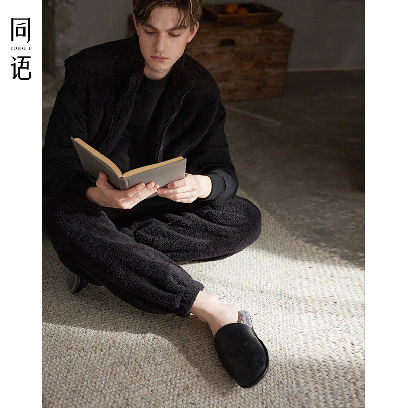 同語パジャマ男性秋冬帯電防止コーラルパイル厚手ベストセットフランネルベルベット男性ホームウェア