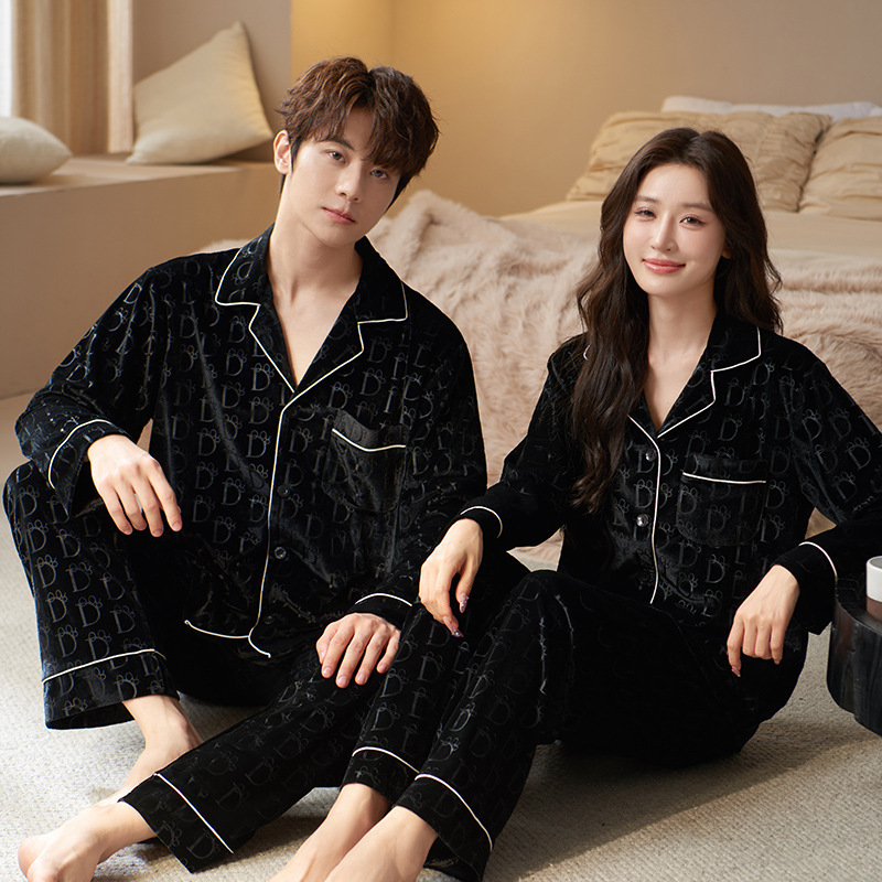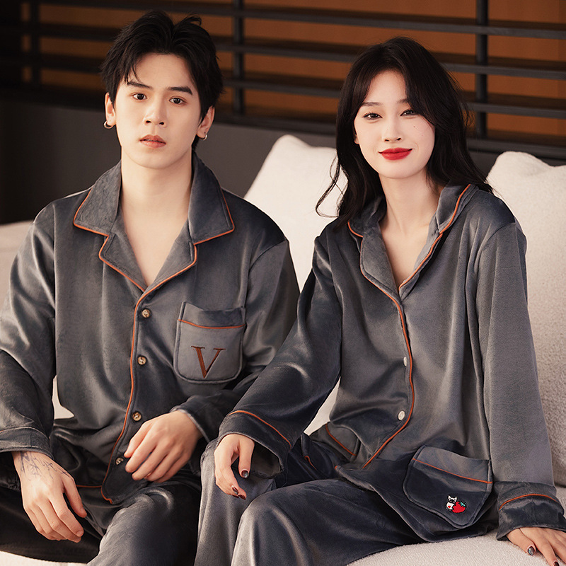 2024種類のカップルパジャマ秋冬のベルベットの薄い保温男性女性ファッション高級感家庭服セット