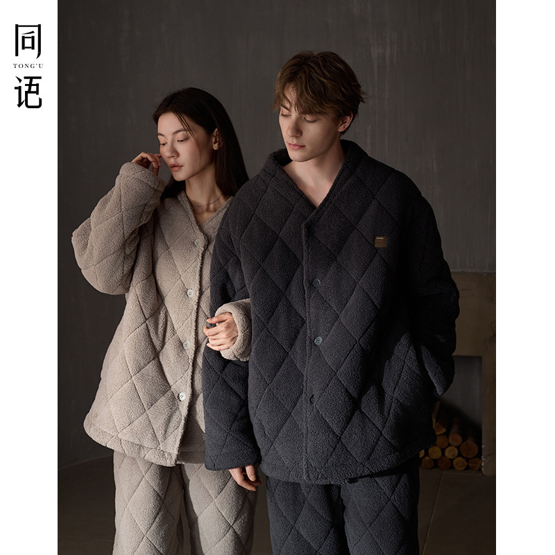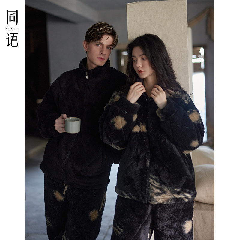 同語カップルパジャマ冬コーラルベルベット三層コットン厚手スーツ男性女性秋冬ホームウェア