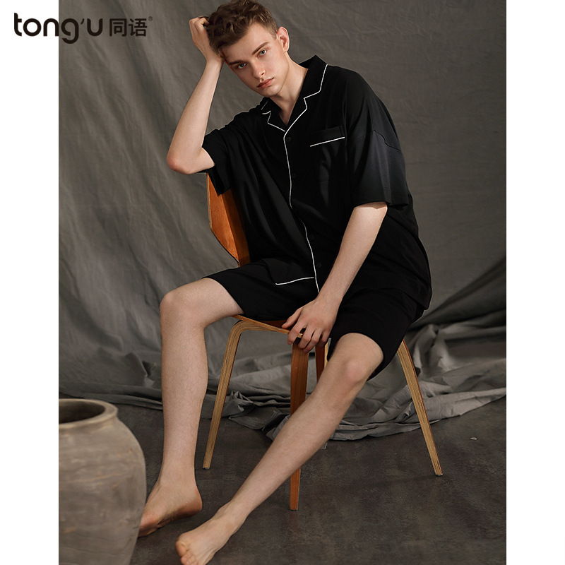涼感ジャカード純綿男性パジャマ夏の新型半袖薄タイプカジュアル2点セット