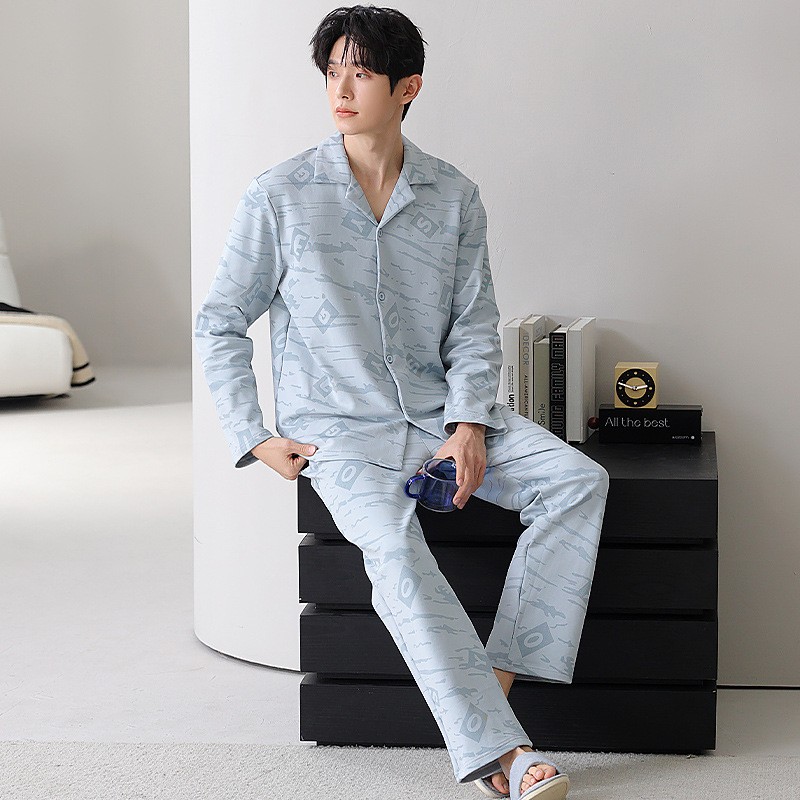 パジャマ男性春秋綿長袖薄いサイズ秋冬綿家庭服セット男性用冬