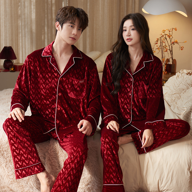 パジャマカップル結婚新婚女赤秋冬金ベルベット軽贅沢男性高級感結婚用新人スーツ