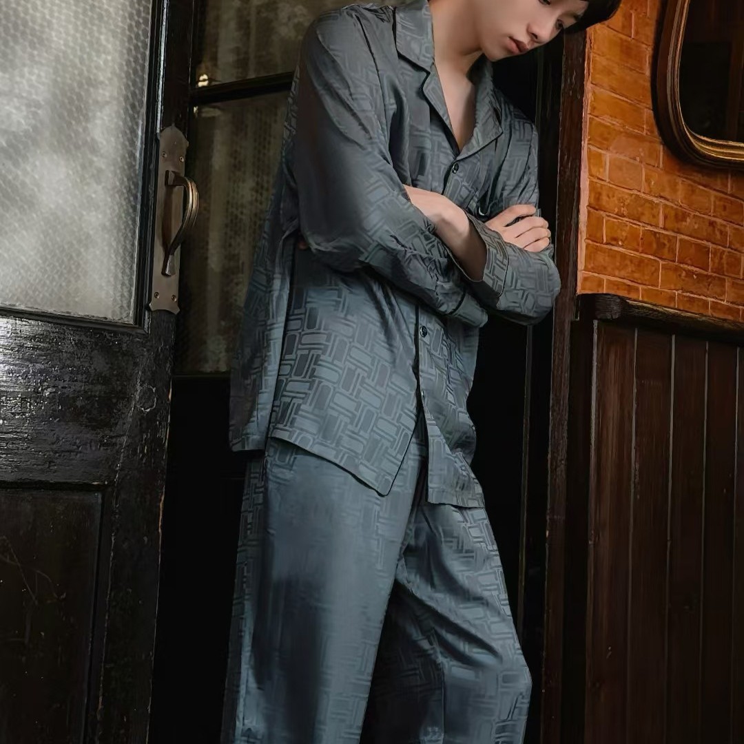 2025新型パジャマ男春秋アイスホーム服薄手長袖高級感ホーム服セット外着可