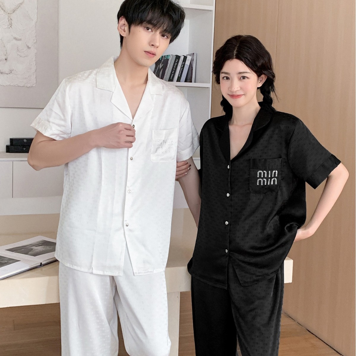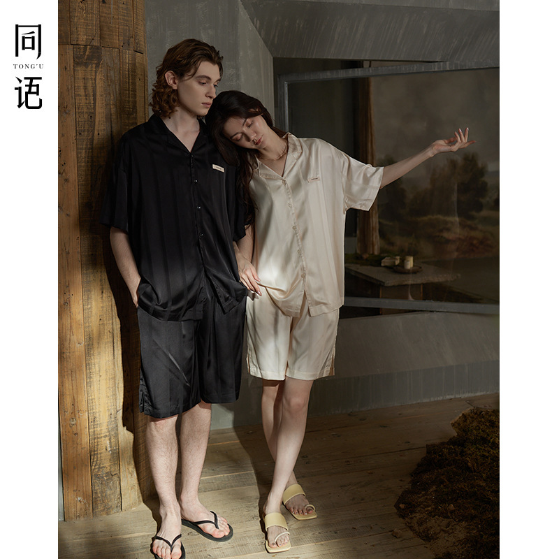 同語2024夏の新型カップルパジャマ半袖半ズボン氷糸涼感女性の薄い家庭服セット男
