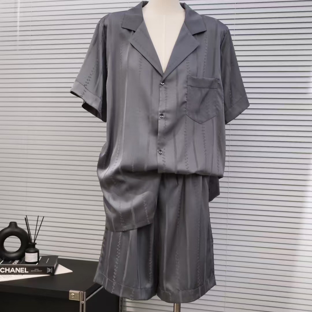 欧米のファッションブランドのショーの男性のストライプの氷の糸のジャカードの韓国版のデザイン感の半袖のパジャマの男性の部屋の服