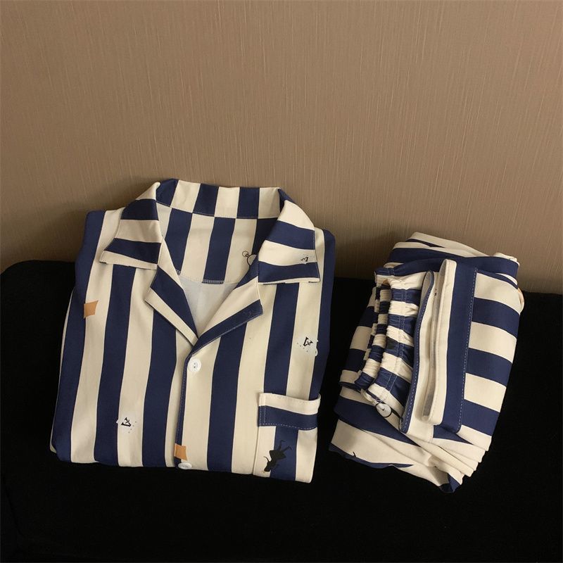 源工場の商品2025カップルの氷糸パジャマ女春秋半袖大サイズの襟折りカーディガンセットネット赤生放送