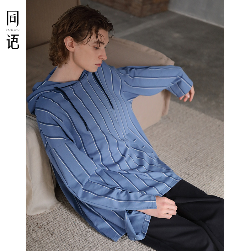 同語2023年新型パジャマ男純綿長袖帽子セット男性カジュアル秋冬ホームウェア