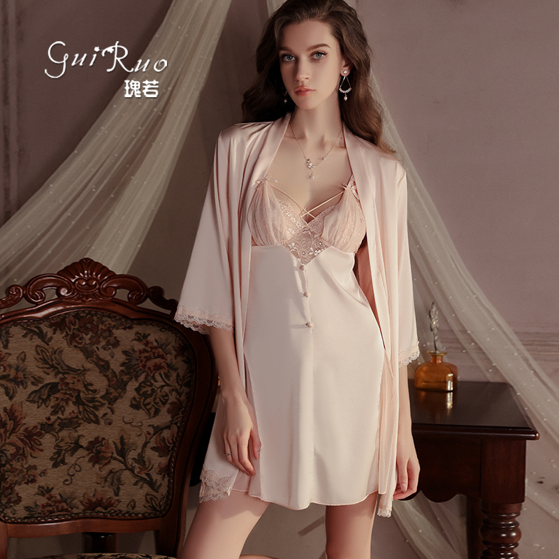 レースサスペンダーパジャマセクシーな中空女性の夏のサテン胸パッド l インターネット有名人誘惑美しいバックネグリジェ