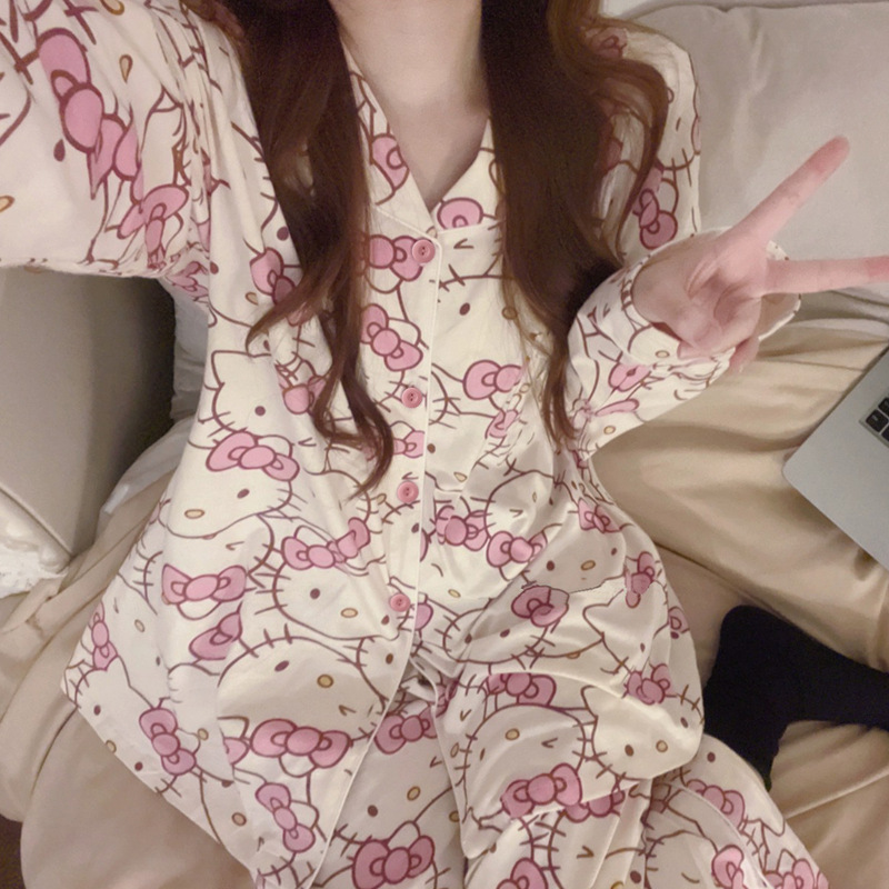 Ins風パジャマ女性長袖長ズボン韓国版春秋甘美パジャマゆるい家庭服セット外国貿易クロスボーダー