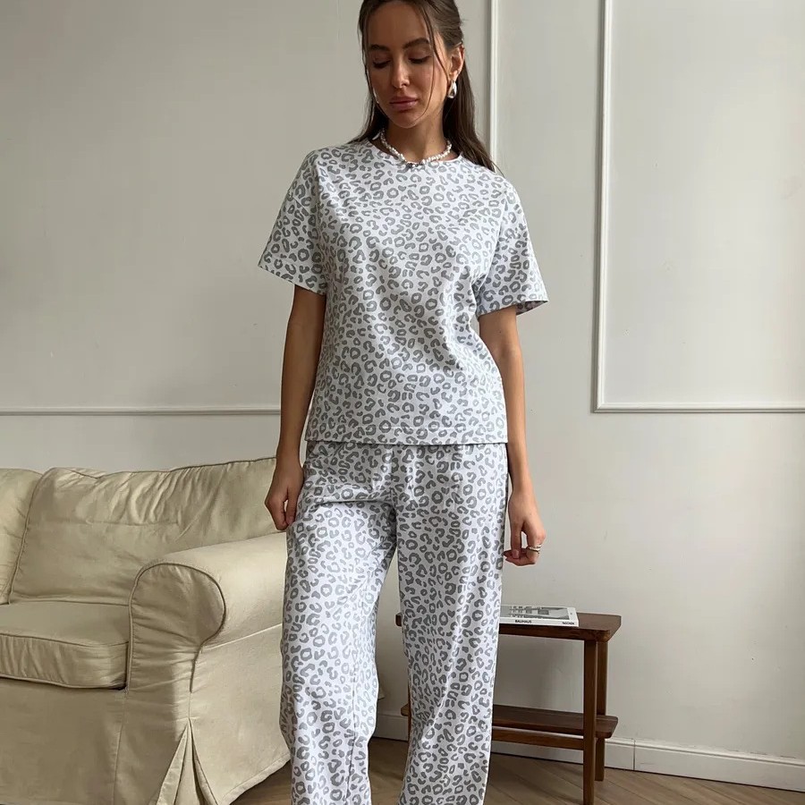 パジャマ夏の女性の 2025 新しいクロスボーダー外国貿易人気ヒョウ柄ガールシンプルカジュアルスーツ