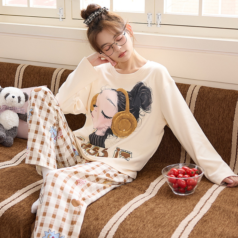韓国風漫画風甘いパジャマ レディース 春秋新作 ガールズ カジュアル ホームウェア 長袖ツーピース 夏 卸売