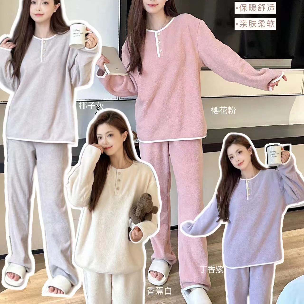 MOTIE末帖絨毛夢セット女性家パジャマ丸首暖かい絨毛家服セット