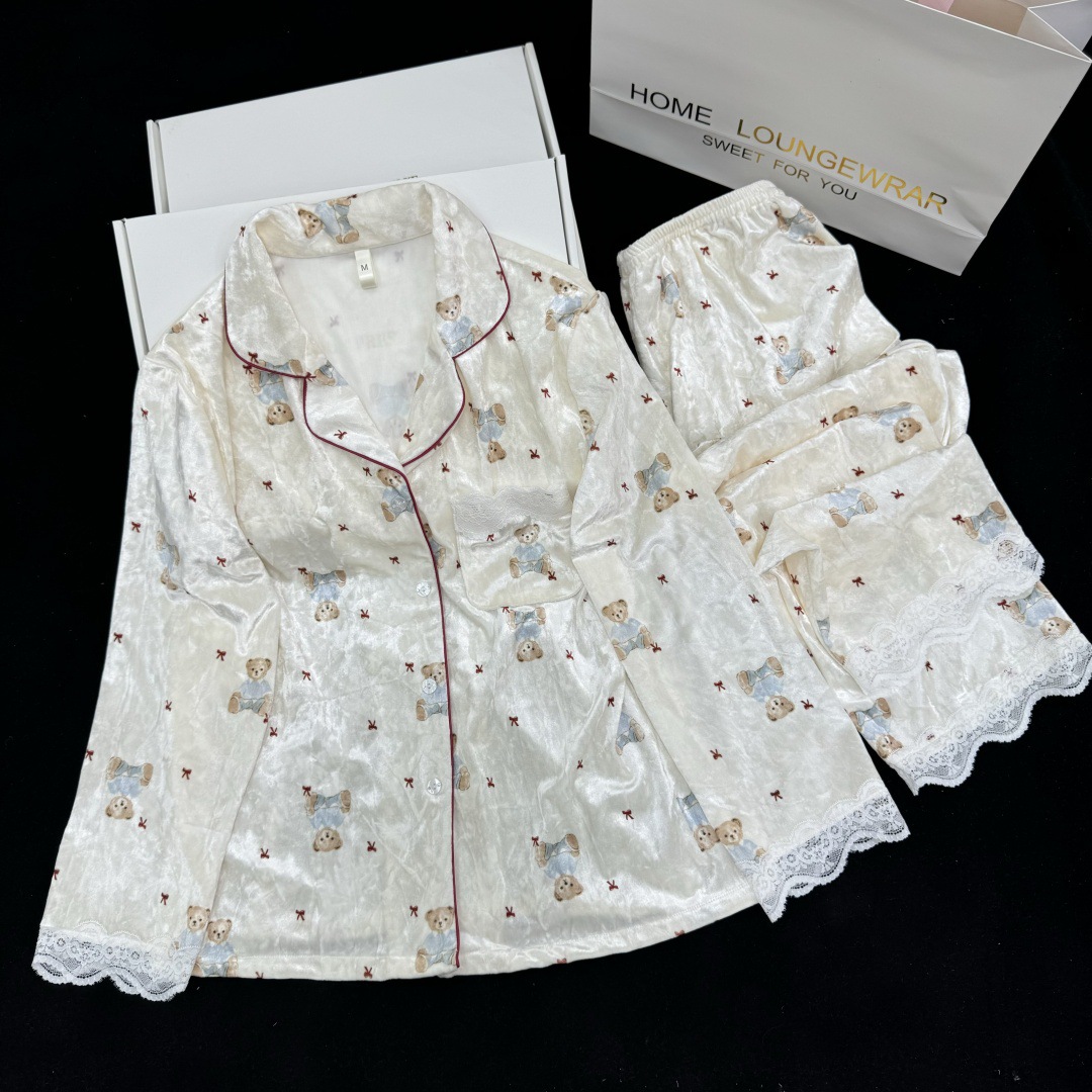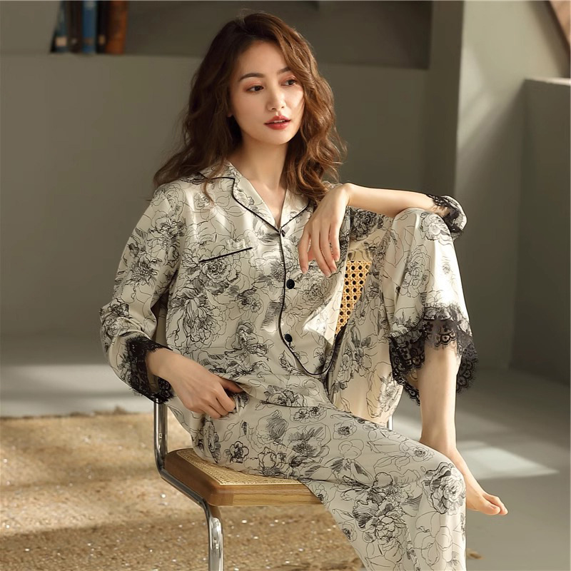 フレンチレースアイスシルクパジャマ女性用春夏秋新作ツーピーススイートガールズスーツホームウェア四季通用