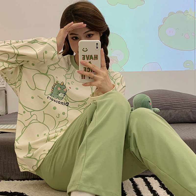 パジャマ女子春秋学生ins寮はゆったりとした大きいサイズのアニメ長袖セットの部屋着を着ることができる