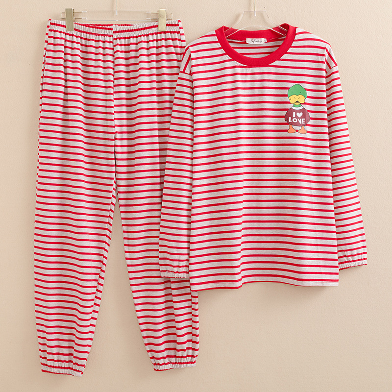 新商品のストライプのパジャマの女性の春と秋の長袖のズボンのスーツの外で大きいサイズのゆったりしている部屋の服を着て卸売りします。