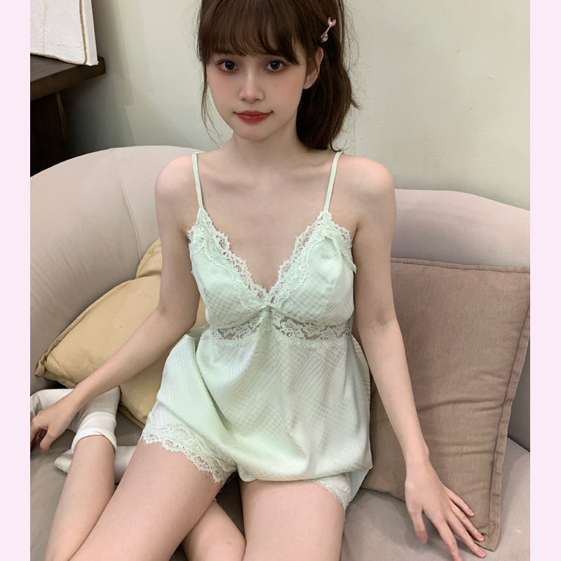ダニーリン国境を越えたセクシーな趣味の氷糸サスペンダースカート春夏の薄いパジャマ女性の部屋服シルクパジャマ
