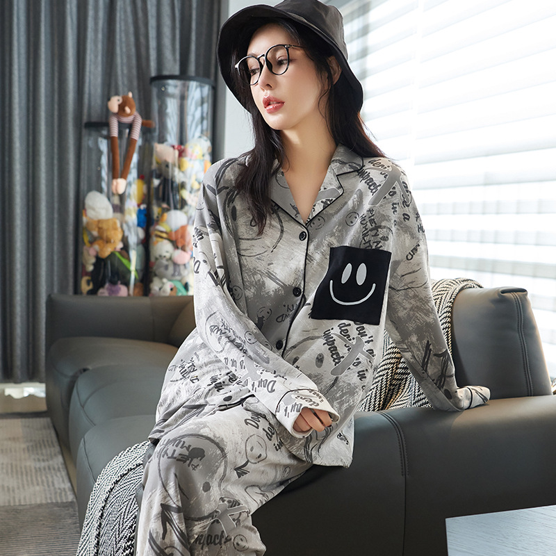 春秋の新型パジャマの女性のカーディガンは長袖をめくって綿のズボンのスーツの漫画の甘い家の服をまねて外に着ることができます。