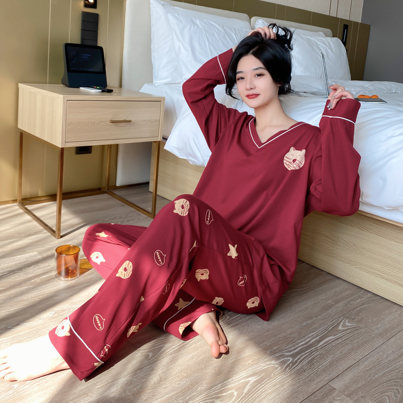 春と秋の女性用純綿パジャマ大きいサイズ長袖アウターウェア韓国風かわいい綿ホーム服セット冬
