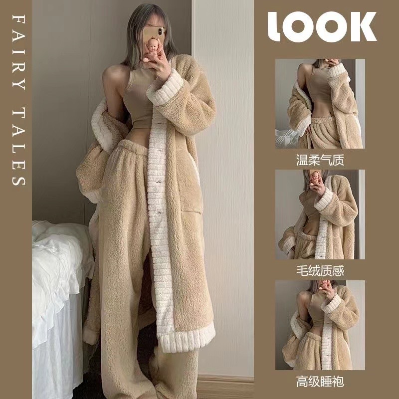 珊瑚フリースパジャマ レディース 冬用 裏起毛 厚手 新作 秋冬 外出可 フランネル ホームウェア 卸売
