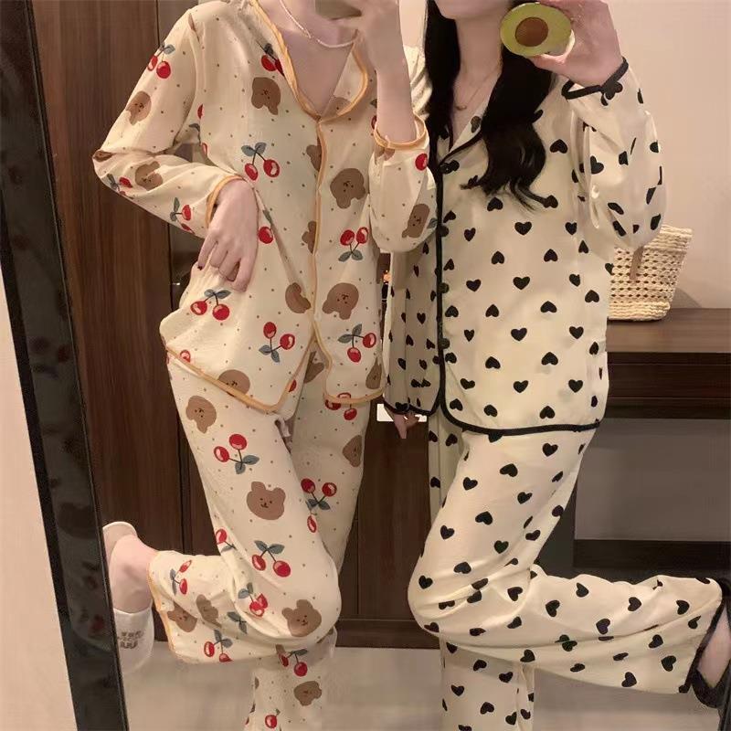 甘いベアーのプリントの長袖のパジャマのズボンのスーツの女性の早秋の2022新型は洋風の家の服の潮を着ることができます。