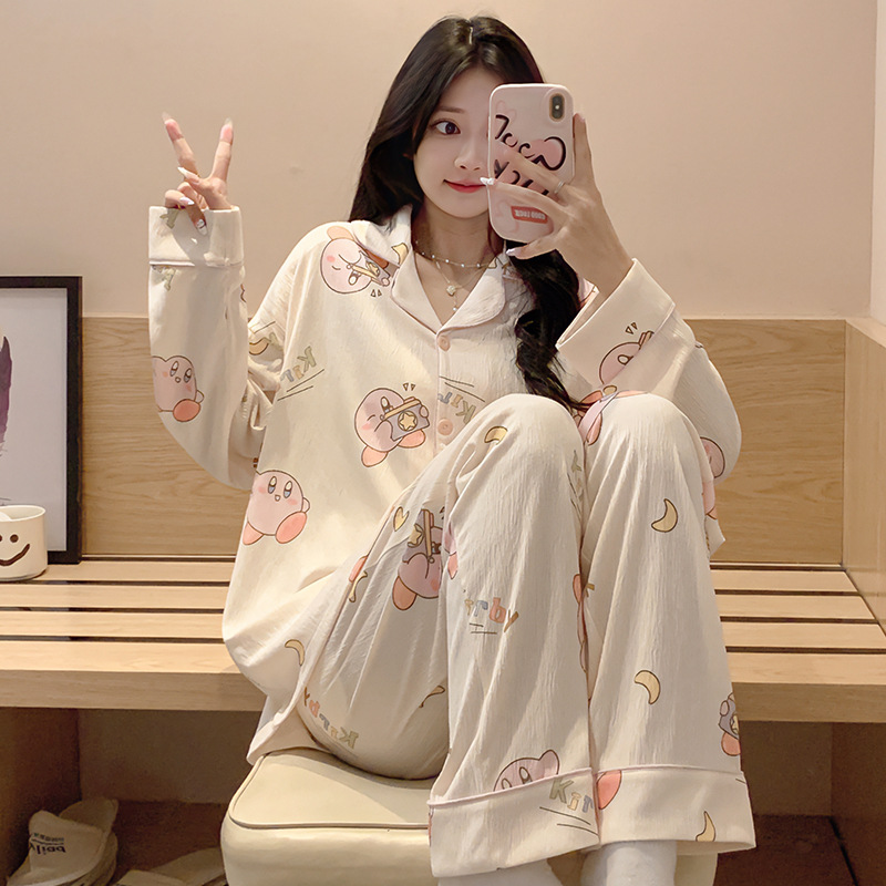 6535綿のパジャマの女性春秋の新型の襟のカーディガンの長袖のズボンの少女の甘くてかわいい家の服は外に着ることができます。