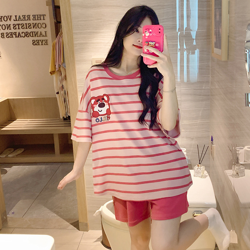 2024年夏半袖パジャマ女子学生ゆったり大きいサイズ可爱いホームウェア2点セット春秋夏