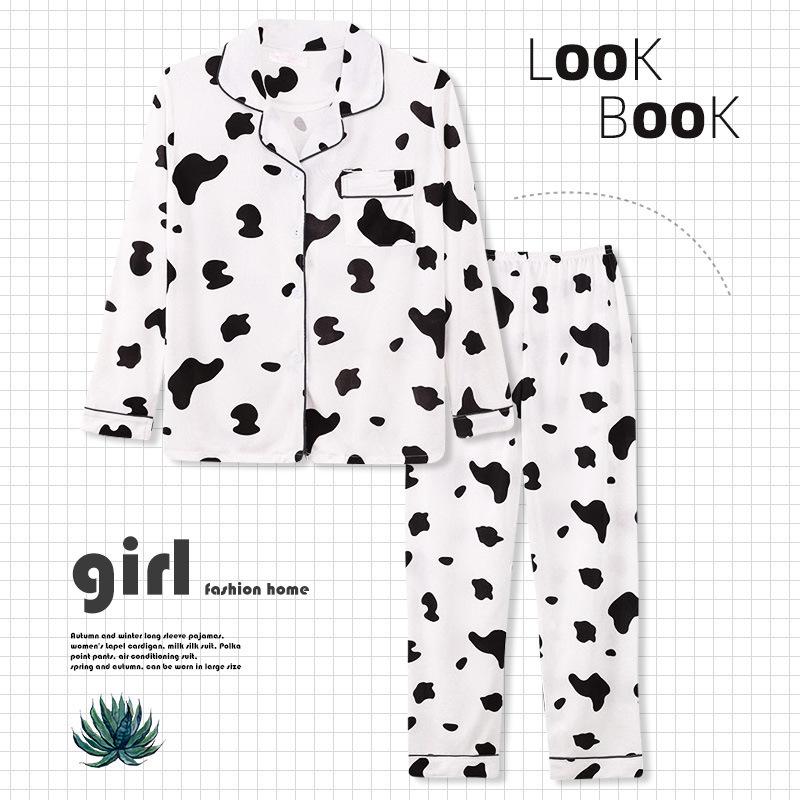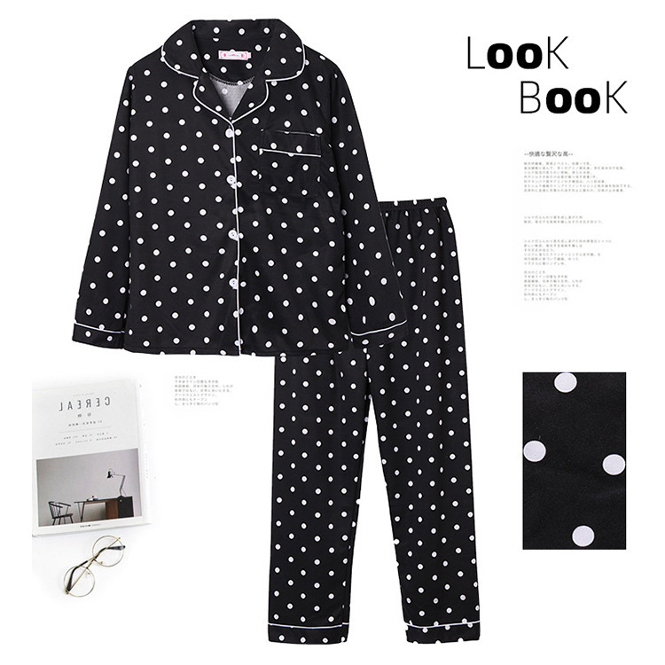パジャマの女性の長袖の長ズボンの外国貿易の部屋の服の襟の波の点のスーツの春と秋のカーディガンの牛乳の糸のエアコンの服