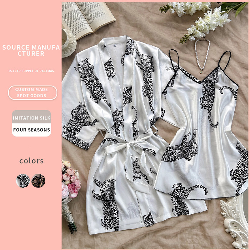 アマゾンクロスボーダー模造シルクパジャマセクシーvネックロングスリングパジャマ2点セットパジャマホームウェアセット