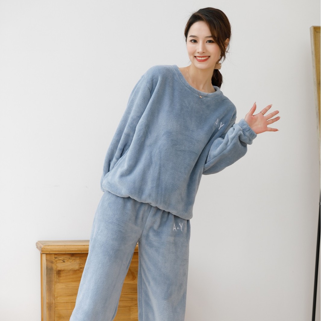 大きいサイズの妖精のような暖かいパンツセット2024ラウンドネックプルオーバーサンゴフリースパジャマ女性秋冬ホームウェア