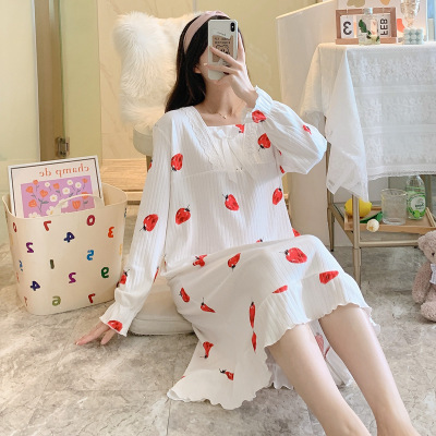 2024年の新型胸付きパジャマ女性秋の韓国版かわいい甘くて快適な春秋長袖のズボンの部屋の服