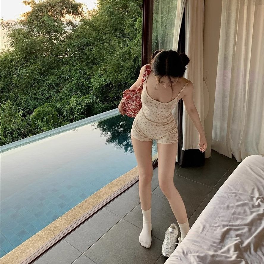 2024アマゾン速売通新商品ハート型プリント衝突色ルームウェア開叉レースサスペンダースカート